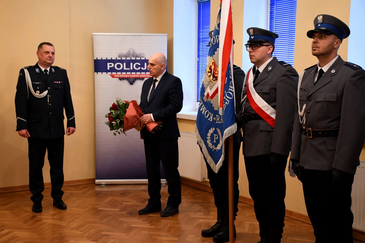 Tego samego dnia w radziejowskiej KPP pożegnano odchodzącego na tzw. zaopatrzenie emerytalne mł. insp. Tomasza Pacholskiego - Komendanta Powiatowego Policji w Radziejowie. Jego obowiązki przejął nadkom. Arkadiusz Zachwieja, który do tej pory, podobnie jak Maciej Górecki, pełnił funkcję zastępcy komendanta. Na zbiórce pojawił się Kujawsko-Pomorski Komendant Wojewódzki Policji nadinsp. Piotr Leciejewski, a także zaproszeni goście. Tym razem starosta Jarosław Kołtuniak życzył emerytowanemu funkcjonariuszowi dużo zdrowia i zasłużonego odpoczynku.